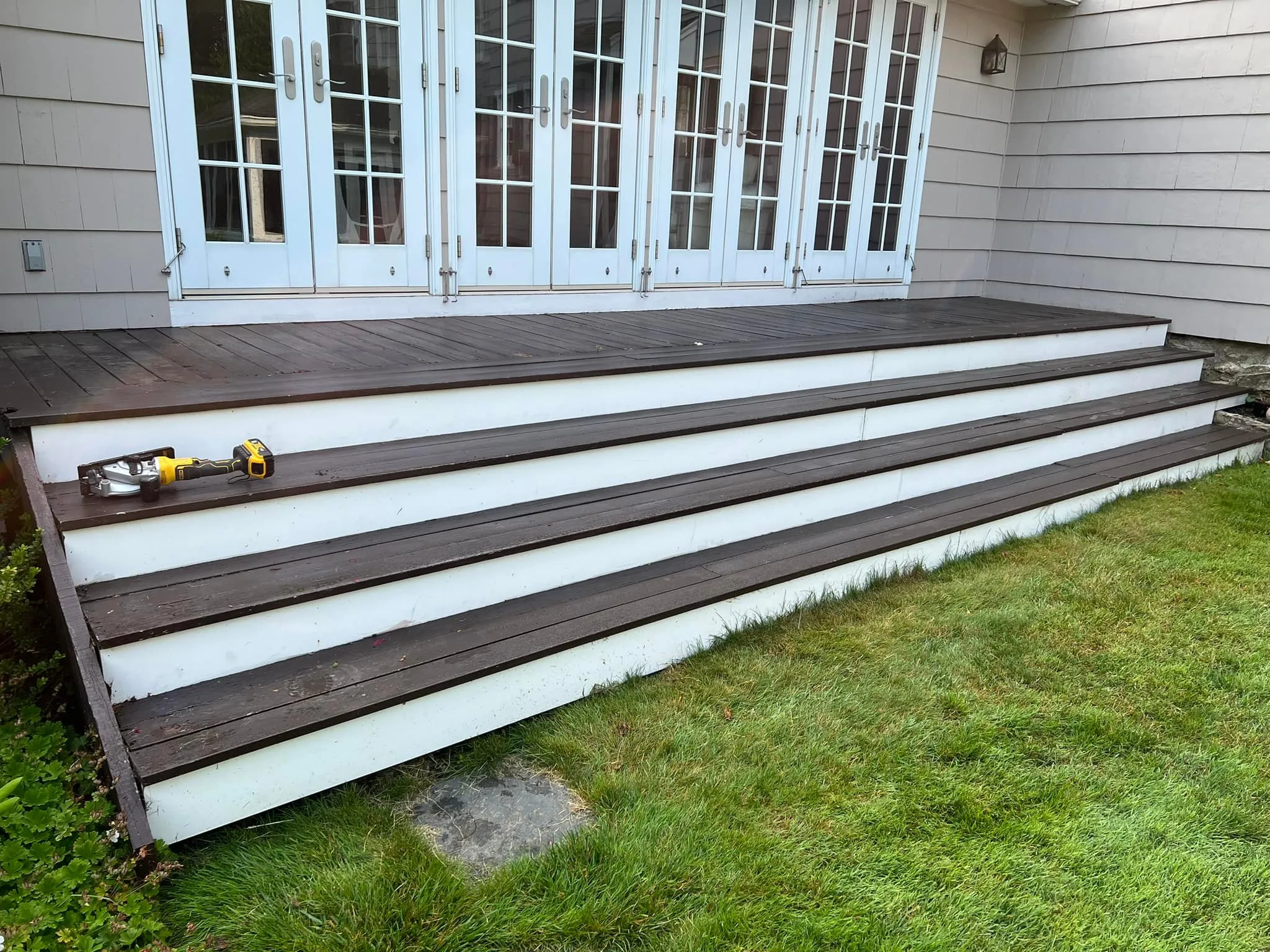 This deck renovation project was focused on restoring and modernizing an aged outdoor platform. The goal was to upgrade both visual appeal and structural durability using Brazilian Ipê-style NewTechWood composite boards—achieving a rich, warm look with minimal maintenance.